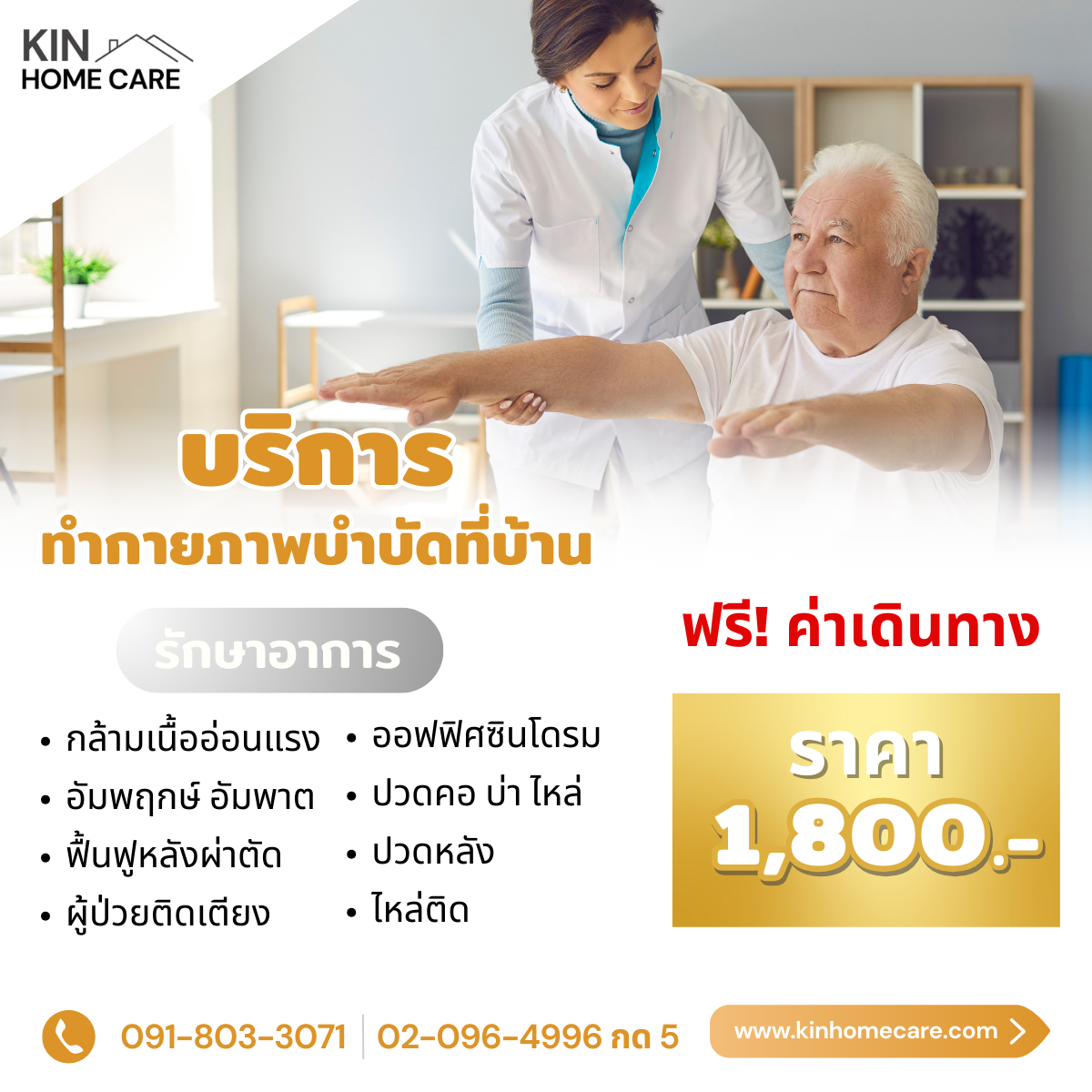 KIN Home Care บริการทำกายภาพบำบัดที่บ้านราคา 1,800 บาท ฟรีค่าเดินทาง !!รักษาอาการ